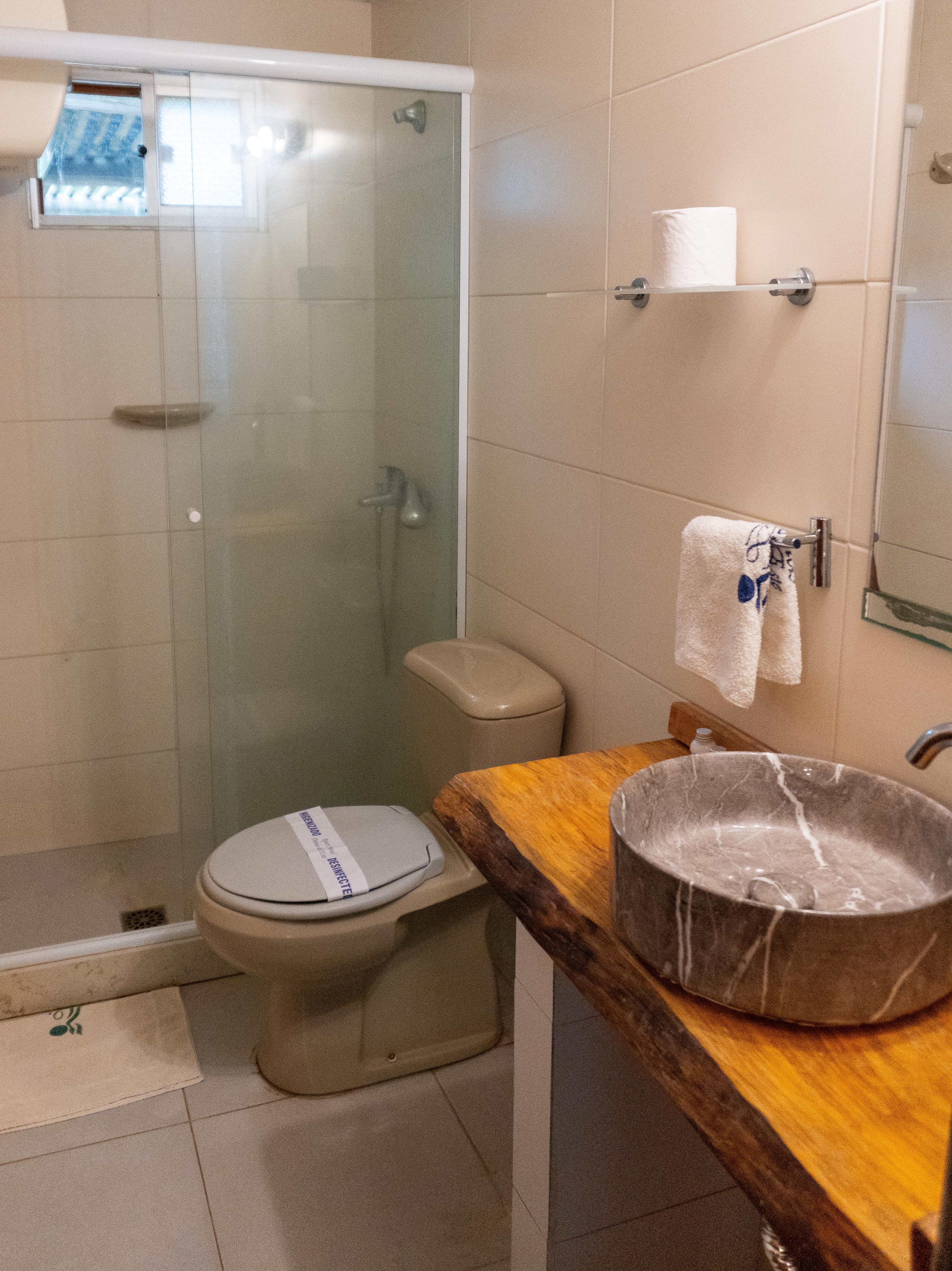 Baño de primer nivel con grifería monocomando y agua caliente en todas las canillas.